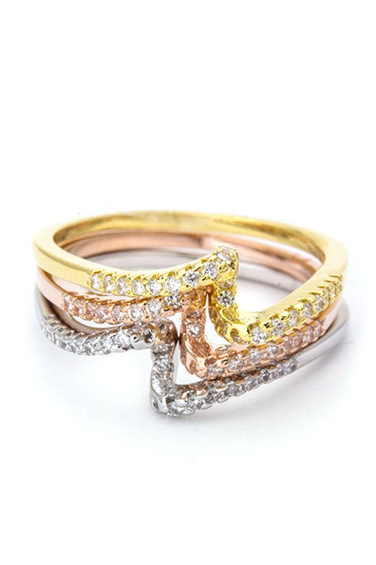 3 In 1 Tri-Tone CZ Twisting Rings